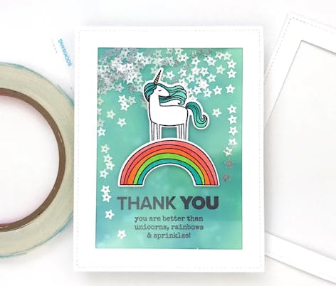 Shake a leg, it's time to get creative! We love these fun sequin-filled thank you cards! Stencil a geometric shape like Everything Art & Craft's hexagon design and fill your shaker card with confetti. Or use your favourite sequins and a beautiful coloured backdrop like Ellen Hutson's unicorn design, a perfect kids thank you card!