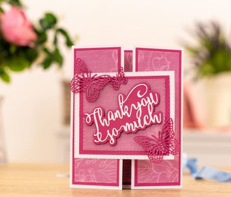 Put your thank you first with die cut thank yous. Create a colourful background for your thank you message like in I'm In Heaven. Or use Crafter's Companion as a card template and embellished with more die cut delights inspired by the Crafter's Companion beautiful butterflies.
